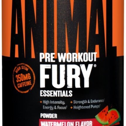 Animal Fury Pre Workout Powder Supplement for Energy and Focus 5g BCAA 350mg Caffeine Nitric Oxide Without Creatine Powerful Stimulant for Bodybuilders, Watermelon, Watermelon, 16.96 Ounce