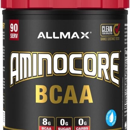 ALLMAX AMINOCORE BCAA, Blue Raspberry – 945 g Powder – 8.18 Grams of BCAAs Per Serving – with B Vitamins – No Fillers or Non-BCAA Aminos – Sugar Free – 90 Servings