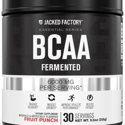 BCAA Powder (Fermented) – 6g Branched Chain Essential Amino Acid Supplement for Improved Muscle Recovery, Reduced Fatigue, Increased Strength, and Muscle Growth – 30 Servings, Fruit Punch