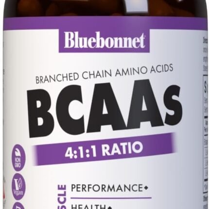 Bluebonnet Nutrition BCAAs 4:1:1 Ratio, Muscle Performance*, Muscle Health*, Muscle Repair*, Non-GMO, Vegan, Kosher Certified, Gluten-Free, Soy-Free, Dairy-Free, 120 Vegetable Capsules, 30 Servings