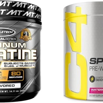 MuscleTech Creatine Monohydrate Powder Platinum Pure Micronized Muscle Recovery + Builder & Cellucor C4 Sport Pre Workout Powder Watermelon – Pre Workout Energy with Creatine
