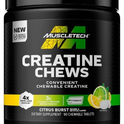 MuscleTech | Creatine Chews | Creapure | Muscle Recovery + Builder for Men & Women | Workout Supplement | 90 Chewable Candies | 30 Servings