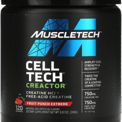 MuscleTech Cell-Tech Creactor – Creatine HCl Formula – Muscle Builder for Men & Women – Creatine HCl + Free-Acid Creatine Supplements – Fruit Punch Extreme, 120 Servings