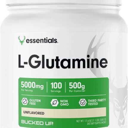 Bucked Up L-Glutamine 500g Powder, Gluten-Free, Non-GMO, Unflavored (100 Servings)