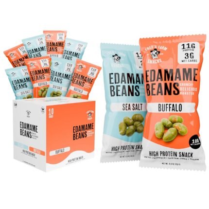 Fred’s Farm Roasted Edamame Snacks – Sea Salt & Buffalo Variety, Low Calorie (0.9oz, 10-Pack) | Keto-Friendly, Low Carb, High Protein (11g) | Vegan, Gluten-Free | Ideal Crunchy Snack for Office and On-the-Go