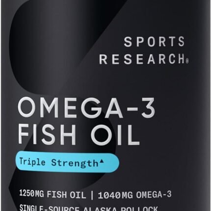 Sports Research Triple Strength Omega 3 Fish Oil 1250mg from Wild Alaska Pollock – Burpless Fish Oil Supplement with Omega3s EPA & DHA – Sustainably Sourced, Non-GMO, Gluten Free – 30 Softgels