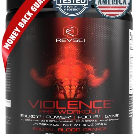 Violence Pre Workout Powder for Men & Women – Clinically Dosed Preworkout with Caffeine + L-Theanine, L Citrulline Malate, Beta Alanine, Alpha GPC – 25 Servings, Blood Orange – Energy, Focus & Pump