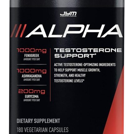 Alpha JYM Testosterone Support | Male Vitality, Hormone Optimization, Ashwagandha, Fenugreek, Eurycoma, Damiana, Quercetin, DIM | JYM Supplemental Science | 180 Vegetarian capsules