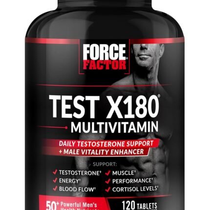 FORCE FACTOR Test X180 Multivitamin for Men Plus Testosterone Support with All 13 Essential Vitamins, for Muscle, Strength, Men’s Health, and Performance, Daily Multivitamin for Adults, 120 Tablets
