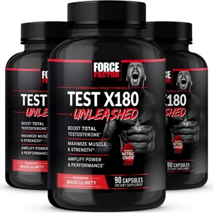 FORCE FACTOR Test X180 Unleashed 3-Pack, Testosterone Booster for Men, Build Muscle, Increase Strength, Improve Performance, Testosterone Supplement for Men’s Health, 270 Capsules
