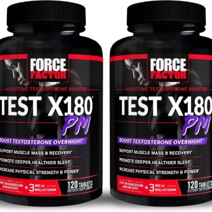 FORCE FACTOR Test X180 PM, 2-Pack, Testosterone Booster for Men, Overnight Testosterone Supplement to Build Muscle, Increase Strength, and Promote Deeper, Healthier Sleep and Recovery, 240 Tablets