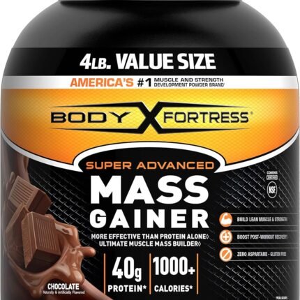 Body Fortress Super Advanced Mass Gainer Whey Protein Powder, Gluten Free, Chocolate, 4 Lb