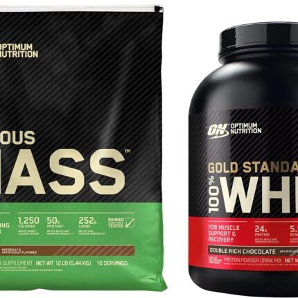Optimum Nutrition Serious Mass Weight Gainer Protein Powder & Gold Standard 100% Whey Protein Powder, Double Rich Chocolate, 5 Pound (Packaging May Vary)