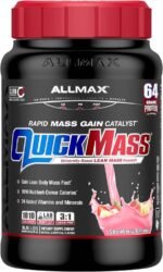 MASS GAINER – ALLMAX QUICKMASS delivers up to 64 grams of sustained-release protein & up to 1,010 calories per every four scoops in a 3:1 carb-to-protein ratio—with zero trans fat, zero non-protein amino acids & only 3 grams of sugar per scoop.