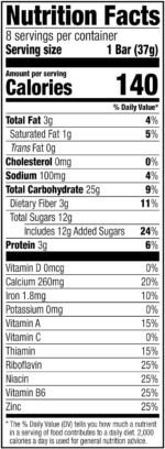 One 10.4 ounce box containing 8, 1.3 ounce breakfast bars; individually wrapped for convenience and freshness
