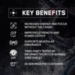 ENERGY WITHOUT THE CRASH: An intense burst of energy and focus, without the dreaded “post-workout crash” due to Infinergy (Di-Caffeine Malate) that buffers the salts in caffeine, allowing easier digestion and replenishing energy produced by caffeine