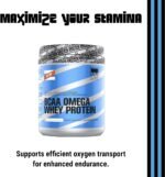 The BCAA Omega Vanilla Protein is a comprehensive supplement designed to support muscle recovery and growth, specifically formulated for those who engage in intense workouts. With its rich blend of essential vitamins and minerals like Potassium, Calcium, and Iron, and the high-quality, RBGH-Free Whey Protein, this supplement ensures optimal muscle repair, energy metabolism, and overall wellness. The addition of antioxidants like Vitamin E helps protect the muscles from oxidative stress, while the blend of B Vitamins, including Thiamine and Riboflavin, boosts energy production, making it an ideal post-workout recovery aid. Its delicious vanilla flavor makes it a delightful and nutritious addition to any fitness regimen, perfect for athletes and fitness enthusiasts looking to maximize their workout results and support their body’s recovery and muscle growth needs.