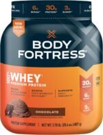 Mix the delicious chocolate flavor of Body Fortress 100% Whey into shakes or smoothies for quality protein whenever and wherever. ◊