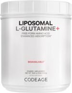 Codeage Liposomal L-glutamine powder supplement provides high-quality, free-form L-glutamine, an amino acid to help support healthy gut function, immune system health, athletic performance, and muscle recovery after workouts.* It comes with a high dose of 5000 mg of l-glutamine powder per serving.