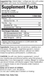 Minami Omega 3 Optimal EPA-DHA Formula is a once-daily, concentrated 80% omega-3 supplement made from the purest fish oil utilizing dual supercritical CO2 extraction technology that delivers 850mg of omega-3s in just one softgel. Unlike fish oils, which are two-thirds saturated fat, it contains no saturated fat. It has a clean orange flavor with no fishy aftertaste. With a ratio of 4:1 of EPA (590mg) to DHA (130mg), this formula is designed to support cognitive, mood and cardiovascular health.†