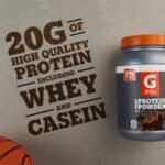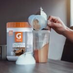 20g of high quality whey protein powder, including casein, to provide essential amino acids that your body can’t make on its own