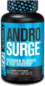 Estrogen Blocker & Testosterone Supplement for Men: Jacked Factory Androsurge is a non-proprietary blend of all-natural ingredients designed to act as an estrogen blocker for men. Androsurge features researched ingredients such as long jack, grape seed extract, and diindolylmethane (DIM) which make it an effective estrogen blocker and testosterone booster for men.*