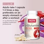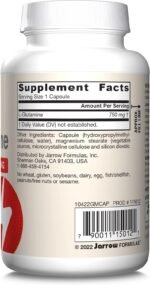 Jarrow Formulas L-Glutamine is manufactured by microbial fermentation. L-Glutamine is the most abundant amino acid in the human body and is involved in many metabolic processes, including the synthesis and protection of muscle tissue, the production of glycogen, and provides immune support during periods of immune and muscular stress.(1) L-Glutamine also supports the integrity of the intestinal lining.(1) This dietary supplement is IGEN non-GMO tested and is gluten-free. Adults take one of these veggie capsules one to two times a day, preferably on an empty stomach or after a workout, or as directed by your qualified healthcare professional. Jarrow Formulas – Superior Science. Smarter Formulas. (1)These statements have not been evaluated by the Food and Drug Administration. This product is not intended to diagnose, treat, cure or prevent any disease.