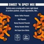 SWEET ‘N SPICY – Your mouth savors the blend of sweetness and hot with Kar’s Sweet ‘N Spicy Mix. Featuring crunchy butter toffee coated peanuts, gently roasted and seasoned spicy peanuts, honey roasted peanuts, Cajun corn sticks and honey sesame sticks.