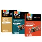 Contains 30 (0.7 oz) KIND Mini Bars- (10) Dark Chocolate Nuts and Sea Salt (10) Caramel Almond and Sea Salt (10) Peanut Butter Dark Chocolate