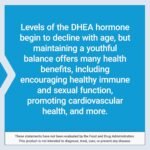 Youthful hormone levels—DHEA is the body’s most abundant circulating hormone. But levels of the hormone begin to decline over time. Supplementing with DHEA can help you support healthy hormone levels and promote healthy immune function and circulatory health. It also helps maintain your healthy mood, lean muscle mass, sexual function and more.