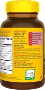 This Nature Made Omega-3 Algae supplement is gluten free, vegetarian and contains no synthetic dyes and no artificial flavors