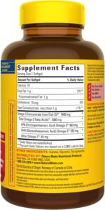 One daily Fish Oil Nature Made Omega 3 (1) softgel provides 683 mg of EPA and 252 mg of DHA to support a healthy heart, brain and eyes