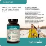 Say goodbye to stinky fish oil supplements and say hello to NatureWise Omega 3 + Vitamin E softgels. Every serving of this omega 3 supplement provides 1060 mg of Omega 3 fatty acids with the added benefits of vitamin E. Why take omega 3 fish oil with vitamin E? Because this dynamic duo works together to support your overall heart health, as well as your eye health. Vitamin E is a fat-soluble vitamin with antioxidant properties that supports omega-3 fatty acids in the body. Omega 3 fatty acids also support overall joint health, comfort, and flexibility. NatureWise Omega 3 + Vitamin E uses a high-quality blend of fish oils to deliver the best source of omega-3 fatty acids. Our Omega 3 supplement is made with premium omega 3 fish oils with the optimal dose of 600 mg EPA and 400 mg DHA fatty acids, and 60 mg of other fatty acids, so your body gets support for your overall heart, brain, joint, and eye health.* NatureWise Omega 3 softgels are gluten-free and non-GMO. These softgels do not contain wheat, gluten, eggs, dairy, peanuts, tree nuts, and corn. This product contains fish (anchovy, mackerel, sardine) and soy. *Statements regarding dietary supplements have not been evaluated by the FDA and are not intended to diagnose, treat, cure, or prevent any disease or health condition.