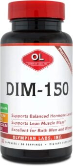 Olympian Labs DIM Supplement 150mg – DIM Diindolylmethane 30 Capsule Supply of DIM for Estrogen Balance, Hormone Menopause Relief, Acne Treatment, PCOS, Bodybuilding