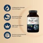 Triple strength 4,200mg fish oil burpless softgels. Infused with natural lemon oil. Top grade deep ocean fish from wild caught source. Avoids typical fishy burps and aftertaste. High omega-3 DHA & EPA essential fatty acids.