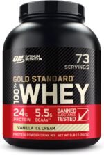 Gold Standard 100% Whey – 24g of protein per serving to help build and maintain muscle when taken over time with regular resistance training