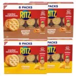 RITZ Sandwich Cracker Variety Pack includes 32 total snack packs, 16 RITZ Peanut Butter Sandwich Crackers and 16 RITZ Cheese Sandwich Crackers snack packs (packaging may vary)