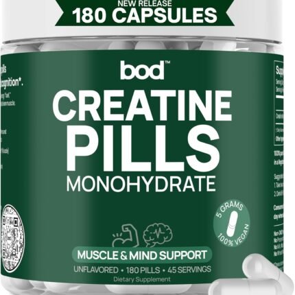 Creatine Monohydrate Pills – Muscle Builder, 180 Capsules 5G, 45 Servings, Vegan, Pre/Post-Workout, | Creatine Capsules for Women and Men, Micronized, Instantized, Powder Tablet Gummy Alt, Creatina