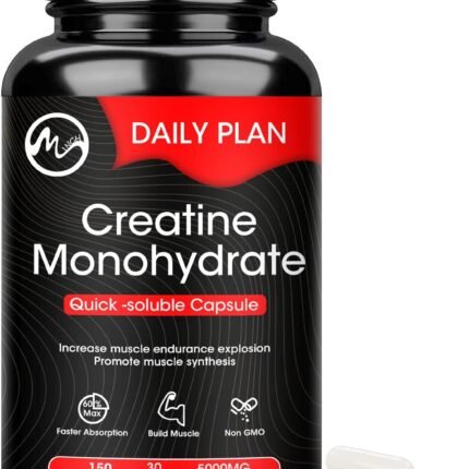 Creatine Monohydrate Capsules 5000MG – Unflavored Creatine pills 150 Capsules – Muscle Strength Supplement – Support Energy /Athletic /Workout Anti-fatigue for Men Women