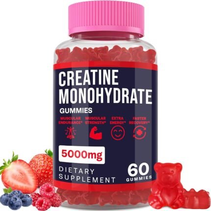 Creatine Monohydrate Gummies for Men & Women, 100% Creatine Mixed Berry Gummies, 5g per Serving + Vegan, Sugar Free + Strength, Energy, Muscle & Booty Gain – 120 Count