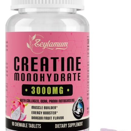 Creatine Monohydrate Gummies 5000mg for Men & Women, Chewables Creatine Monohydrate for Muscle Strength, Muscle Builder, Energy Boost, Pre-Workout Supplement(90 Count)-Strawberry Flavor