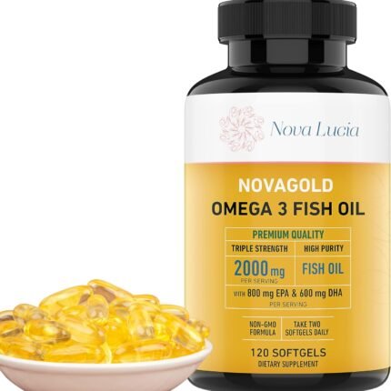 Omega 3 Burpless Fish Oil Supplement 2000mg Max Strength Maintain Healthy Heart, Sharper Brain, Shiny Hair, Boost Immune System, High Potency EPA & DHA Vitamin E, Non-GMO 120 Small Liquid Softgels