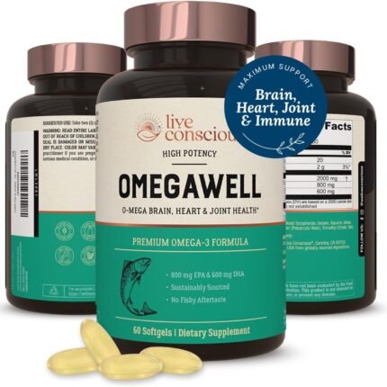 OmegaWell Omega 3 Fish Oil – 2000mg Capsules: Heart, Brain, & Joint Support – 800 mg EPA 600 mg DHA – w/Natural Lemon Oil, Sustainably Sourced – Mini Softgels – 30 Day Supply