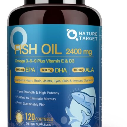 Triple Omega 3 6 9, Fish Oil 2400mg Softgels with Vitamin D3 & E – EPA & DHA & ALA – Supports Heart, Brain, Joint & Immune Health, Sustainably Sourced, Non-GMO